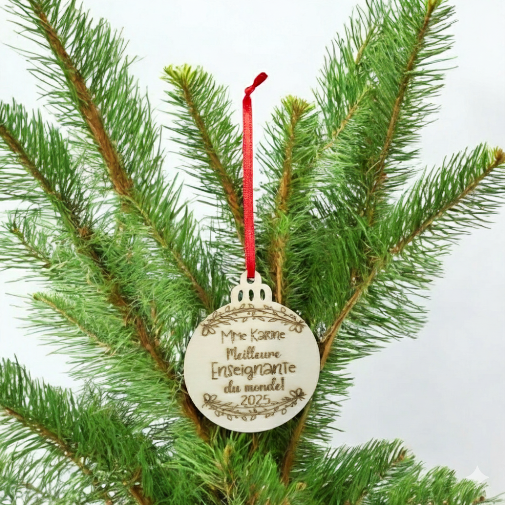 Ornement Boule de Noël en Bois Gravé - "Meilleure enseignant(e) du Monde